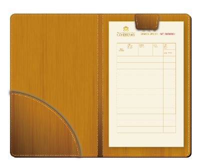 看到這個模板了嗎?這是一個酒店點菜夾模板:這個點菜夾設(shè)計看起來很高檔很別致,它的制作色彩是依照設(shè)計樣本制作的,規(guī)格是140X230mm,所用材質(zhì)是牛皮,工藝上是采用壓紋制作形成的。