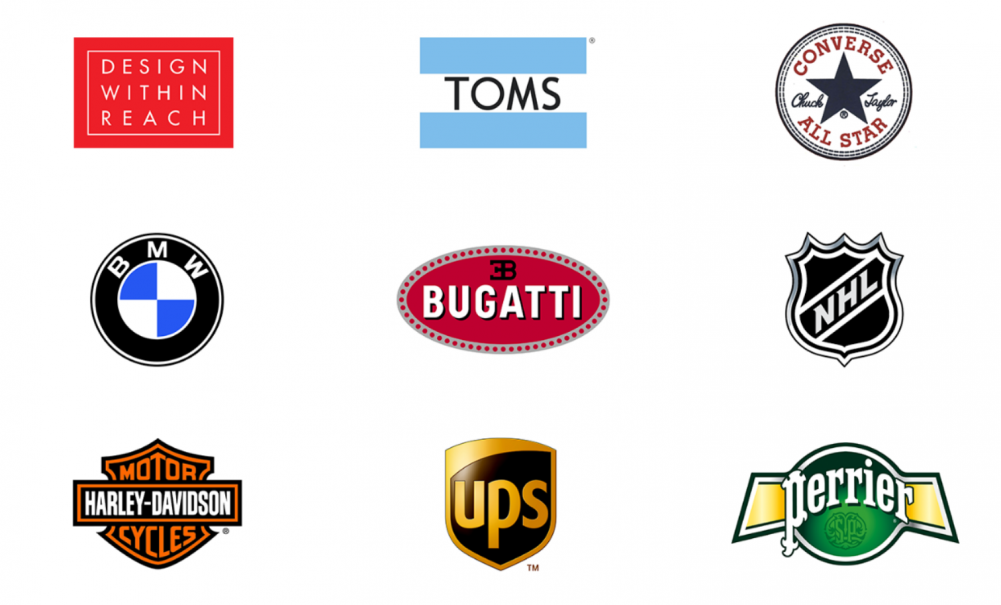 會徽公司標(biāo)志的示例包括:Design Within Reach、Toms、Converse、BMW、Bugatti、NHL、Harley Davidson、UPS 和 Perrier。