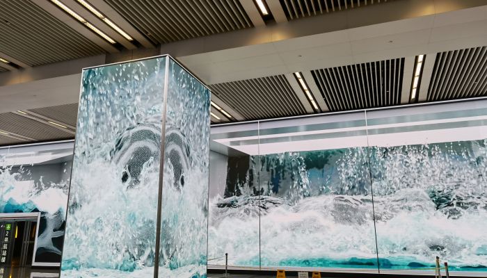 機(jī)場(chǎng)品牌設(shè)計(jì)的宣傳在這里體現(xiàn)了一個(gè)品牌的多媒體動(dòng)畫(huà)效果在機(jī)場(chǎng)有不同類(lèi)型的廣告,如何突出我們的廣告目的呢?在這里利用最新的科技,把LED的點(diǎn)陣模式覆蓋整面墻體的設(shè)計(jì)動(dòng)畫(huà)通過(guò)整體形同的動(dòng)畫(huà)形式,機(jī)場(chǎng)品牌設(shè)計(jì)形成大面積的LED屏幕,這樣就會(huì)體現(xiàn)強(qiáng)大的震撼力和影響力。